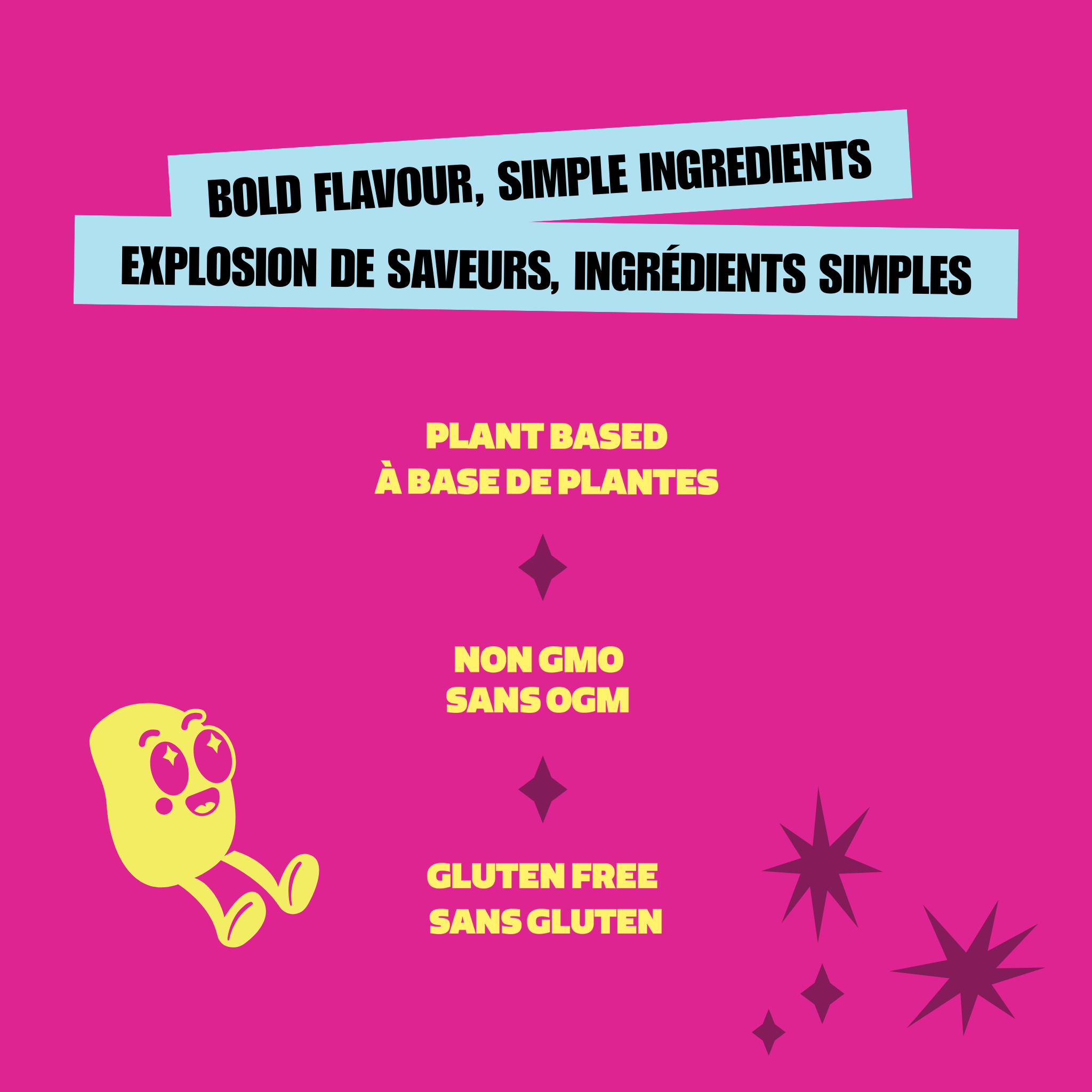 - Saveur audacieuse, ingrédients simples : préparés avec une courte liste d’ingrédients savoureux et non-OGM, comme le soya cultivé au Québec et des marinades maison.